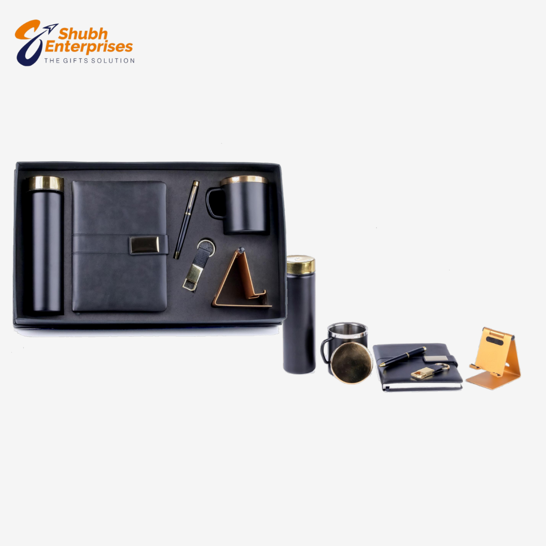 6 in 1 Gift Set SS Bottle Mobile Stand Note Book Key Chain SS Mug Pen
