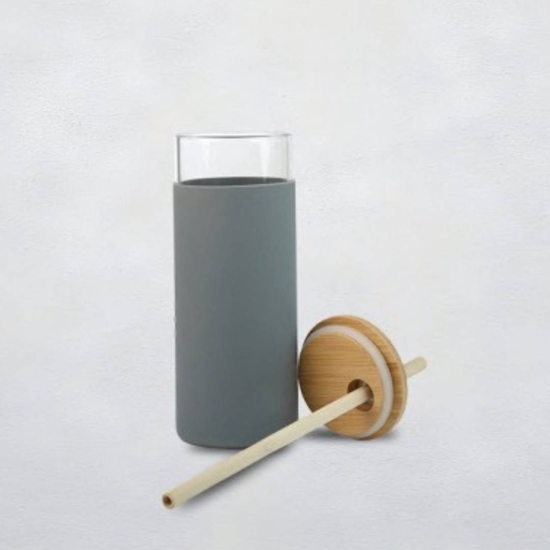 Material :- Glass Bottle with Silicone cover and Bamboo Cap